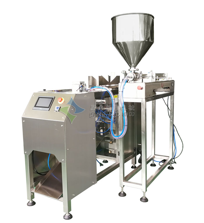 全自動(dòng)自立袋洗衣液灌裝機(jī)是星火新研發(fā)的一款產(chǎn)品,上袋、定量灌裝、封合、切膜、自動(dòng)計(jì)數(shù)一次性自動(dòng)完成,工藝流程部位采用不銹鋼制造,包裝袋熱合、送袋長度、包裝重量、加熱溫度的調(diào)整,簡便可靠,連續(xù)灌裝精度高,包裝速度快,維修方便,是用戶致富選擇的理想設(shè)備。包裝產(chǎn)品美觀牢靠,外殼、管道、定量泵采用不銹鋼結(jié)構(gòu),確保衛(wèi)生,符合食品衛(wèi)生的要求