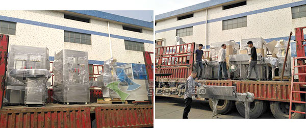 深圳市興萬家實業(yè)有限公司訂購的瓶裝調料粉灌裝生產線正在裝車