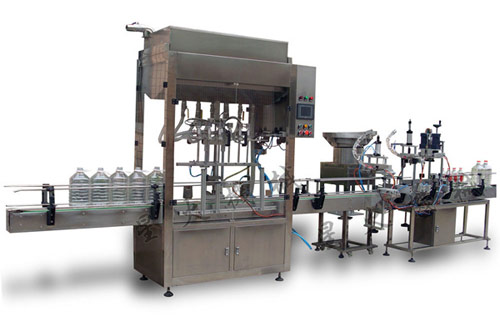 全自動食用油灌裝流水線由直線型自動灌裝機及自動上蓋機、臺式旋蓋機等設備組成,全線自動完成灌裝、旋蓋、貼標、噴碼等過程。整套流水線全不銹鋼材質,機器主要部件均采用國內外知名品牌配件,保證了機器的穩定及可靠性,在國內各大食用油生產企業使用反饋結果表明,運行穩定,維修率低,灌裝精度高,操作及維護更加方便,更人性化。