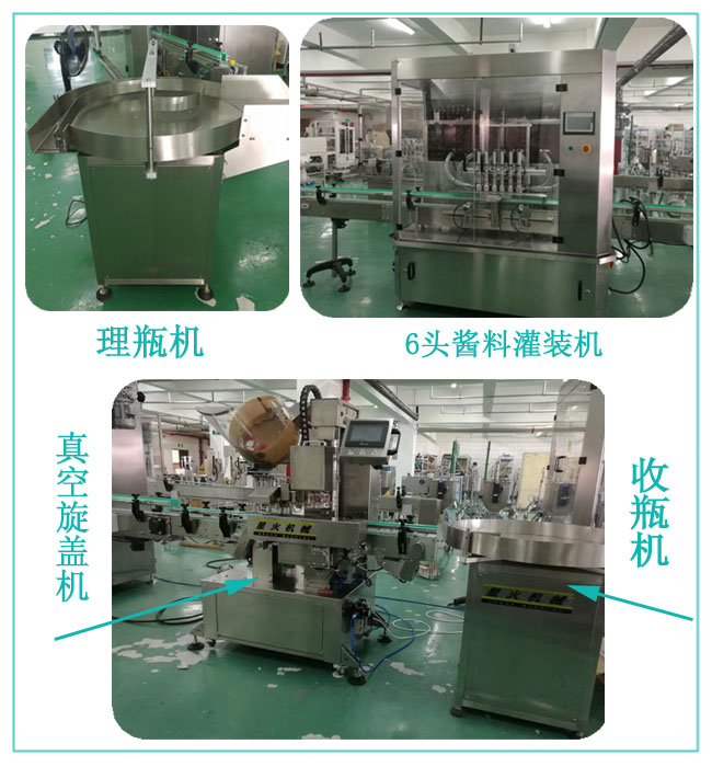 理瓶機、六頭醬料灌裝機、全自動真空旋蓋機、收瓶機