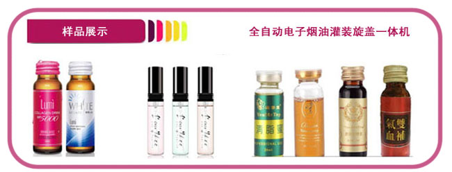 全自動電子煙油灌裝機--煙油灌裝加塞旋蓋機主要適用于50毫升以內電子煙油、滴眼液、指甲油、眼影、精油等產品的自動灌裝、加塞和旋蓋。